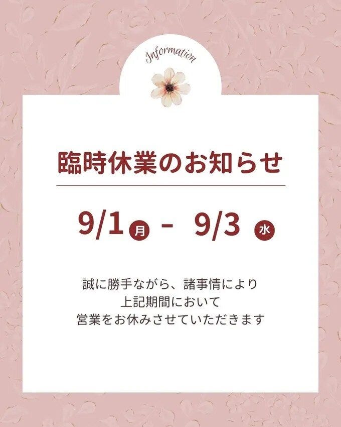 ◆9月 臨時休業のお知らせ◆